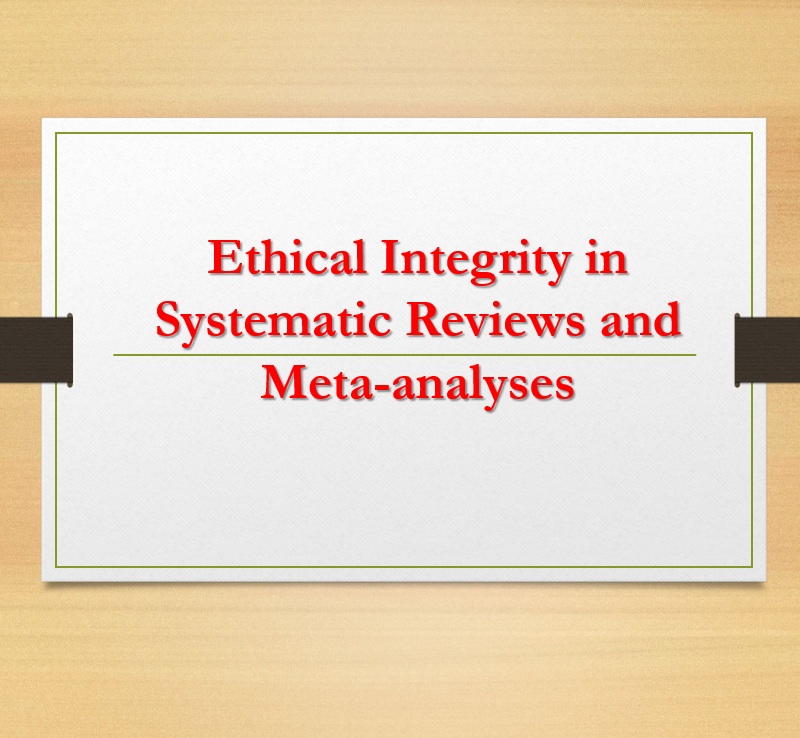 Conclusions: To protect the integrity of ophthalmic evidence synthesis, SRMAs must adhere to the highest ethical standards. Researchers should commit to transparent, methodologically rigorous, and ethically sound practices. Journals and institutions must enforce compliance, provide oversight, and support education in research integrity. Field-specific adaptations of reporting standards may further support ethical clarity. Ultimately, ethical SRMAs are critical to preserving trust, guiding responsible care, and fulfill their intended role as trustworthy instruments in advancing evidence-based ophthalmology.