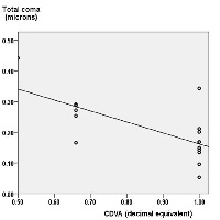 To analyse the effect of congenital unilateral ptosis on the ocular higher order aberrations (HOA) and to compare these eyes with normal fellow eyes this study has been performed. In this observational comparative case series, 16 eyes of 16 patients less than 15 years old with congenital unilateral upper eyelid ptosis were included. Corrected distance visual acuity (CDVA), corneal topography, ocular HOA’s with Zywave workstation was recorded. The amount of ptosis was measured from marginal reflex distance (MRD1). The ocular HOA’s were compared between the ptosis and the normal fellow eyes after making necessary corrections to avoid errors due to enantiomeric midline symmetry. The mean age was 12.5±2.7years (range7-15years). The mean MRD1 was -0.9±1.8mm in the ptosis eyes. There was significant difference noted in the mean 6mm Zernicke coefficients Z3−3 (p=0.002), Z4−2 (p=0.034), Z42 (p=0.008), Z5−5 (p=0.044), Z51 (p=0.039), Z53 (p=0.036), Z55 (p=0.044) between the ptosis and the fellow eyes. The mean Z3−3 was -0.17±0.15 and 0.07±0.12 in the ptosis and the normal eyes respectively. There was a significant difference (p=0.023) in total RMS (root mean square) between the ptosis and the normal eyes. Total coma aberration correlated with CDVA (p=0.004) and MRD (p=0.030) in the ptosis eyes. There was no correlation (p=0.815) between the age (duration of ptosis) and total RMS. In conclusion, Eyes with congenital ptosis differed from their normal fellow eyes in the higher order aberrations. None of the HOA’s which differed between the two groups affected the visual acuity in the ptosis eyes.